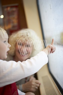 • Søkeord: mennesker, menneske, sete, ombord, interiør, inne, plass, reisende, passasjer, kvinne, dame, barn, vindu, se, peke, bestemor,